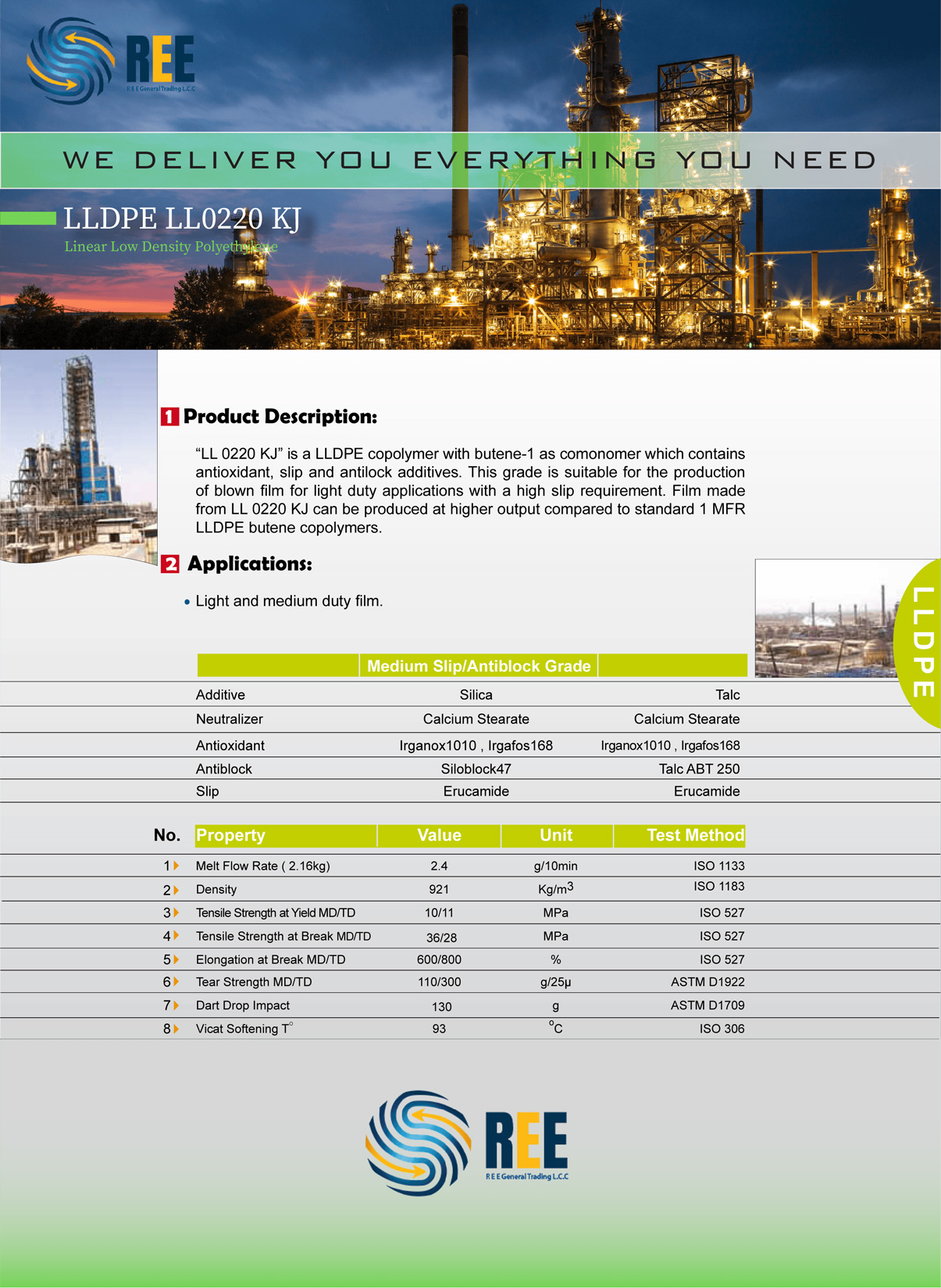 Products Oil & Gas & Petrochemical Products Polyethylenes Linear Low Density Polyethylene LLDPE LL0220 KJ